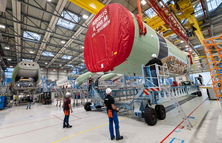 最終組立を控えるインドネシア空軍向けA400Mの2号機(エアバス提供)