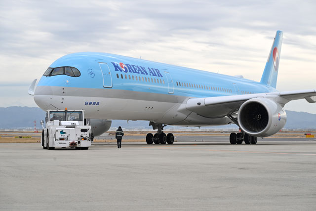 関空を出発する大韓航空のA350-900ソウル仁川行きKE724便=25年1月27日 PHOTO: Tadayuki YOSHIKAWA/Aviation Wire
