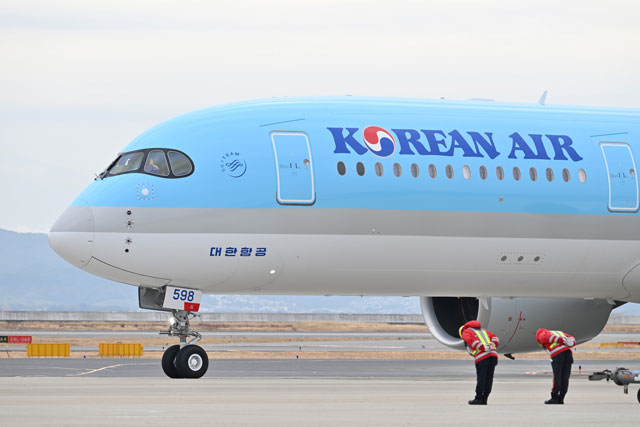 関空を出発する大韓航空のA350-900ソウル仁川行きKE724便=25年1月27日 PHOTO: Tadayuki YOSHIKAWA/Aviation Wire
