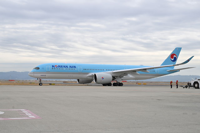 関空を出発する大韓航空のA350-900ソウル仁川行きKE724便=25年1月27日 PHOTO: Tadayuki YOSHIKAWA/Aviation Wire