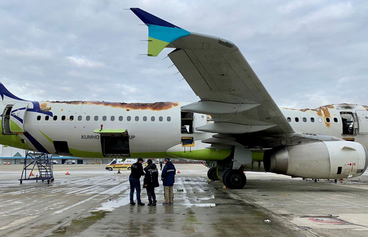 乗客のモバイルバッテリーが火元とみられる火災が起きたエアプサンの釜山発香港行きBX391便のA321 HL7763(BEA提供)
