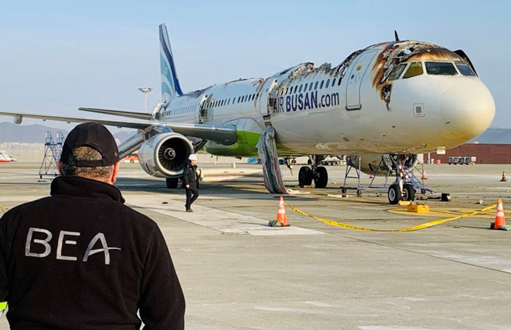 乗客のモバイルバッテリーが火元とみられる火災が起きたエアプサンの釜山発香港行きBX391便のA321 HL7763(BEA提供)