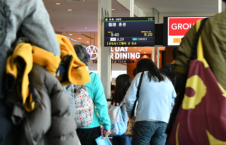 JALの香港就航70周年記念便となった羽田発香港行きJL29便の乗客=25年2月4日 PHOTO: Yusuke KOHASE/Aviation Wire