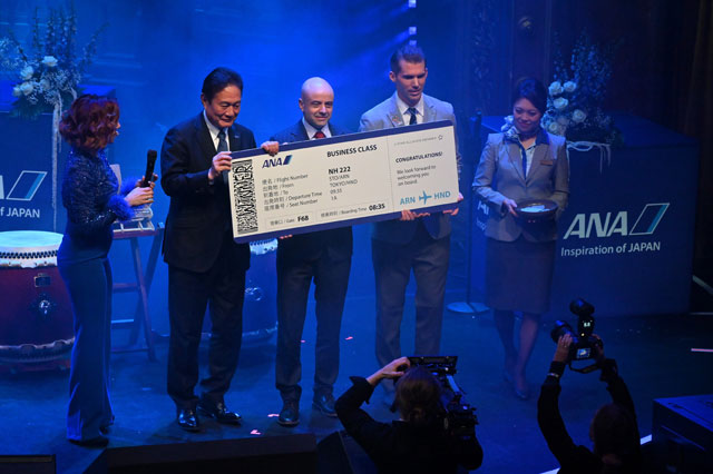ANAのガラパーティーで行われた航空券の抽選会=25年2月4日 PHOTO: Tadayuki YOSHIKAWA/Aviation Wire