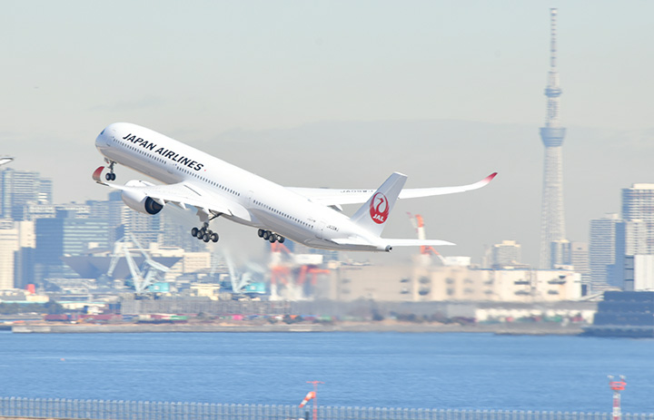 羽田空港のC滑走路を離陸したJALのA350-1000 9号機JA09WJによるロンドン行きJL43便=25年2月10日 PHOTO: Yusuke KOHASE/Aviation Wire