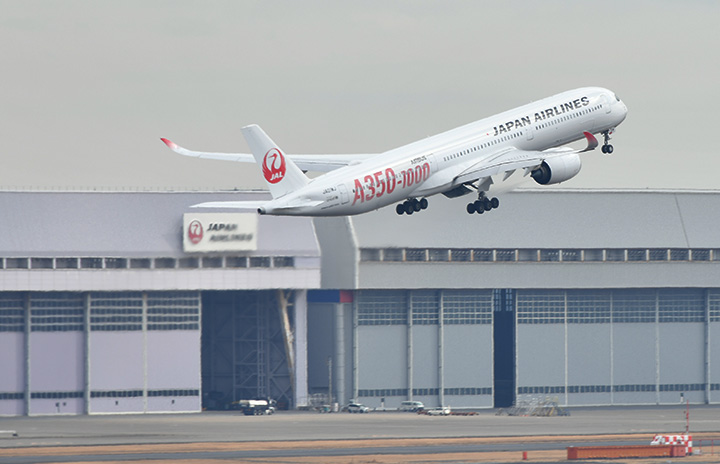 羽田空港のA滑走路を離陸したJALのA350-1000初号機JA01WJによるシンガポール行きJL37便=25年2月12日 PHOTO: Yusuke KOHASE/Aviation Wire