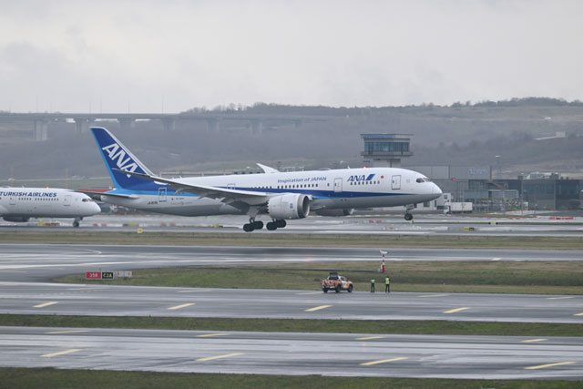 イスタンブール空港に着陸するANAの羽田発初便NH219便=25年2月12日 PHOTO: Tadayuki YOSHIKAWA/Aviation Wire