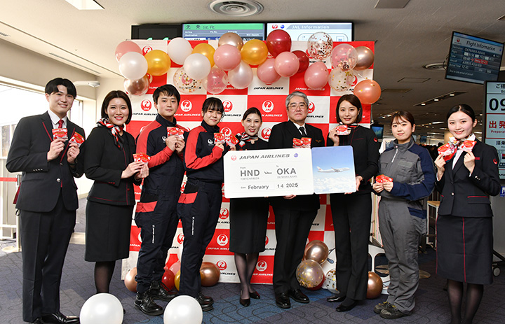 羽田空港でのバレンタインイベントに参加したJALグループのスタッフ=25年2月14日 PHOTO: Yusuke KOHASE/Aviation Wire