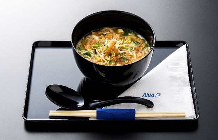 ANAが日本発国際線で提供するオリジナルのみそラーメン(同社資料から)