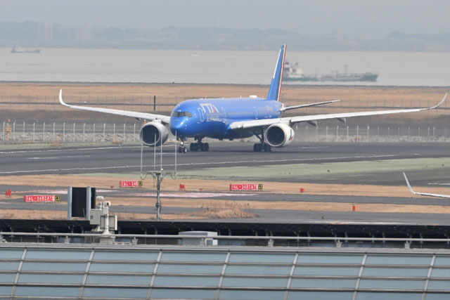 羽田空港を離陸するアリタリアのロゴを描いたITAエアウェイズのA350-900によるローマ行きAZ793便=25年2月16日 PHOTO: Tadayuki YOSHIKAWA/Aviation Wire