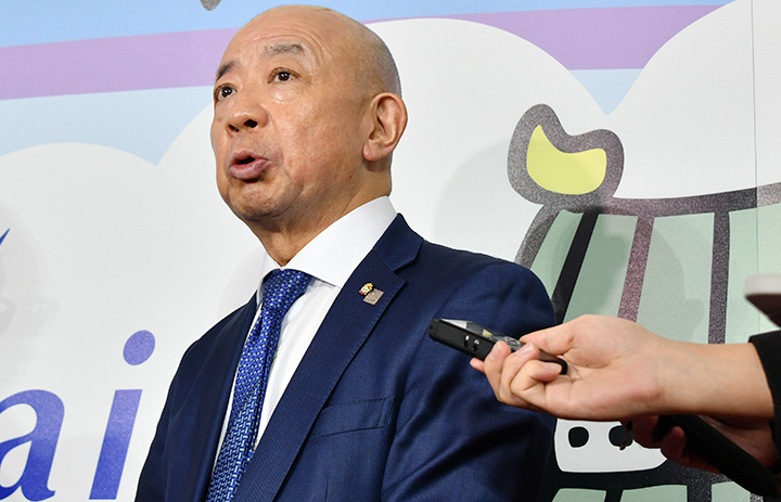 中部空港開港20周年で取材に応じる中部国際空港会社の犬塚社長=25年2月17日 PHOTO: Yusuke KOHASE/Aviation Wire