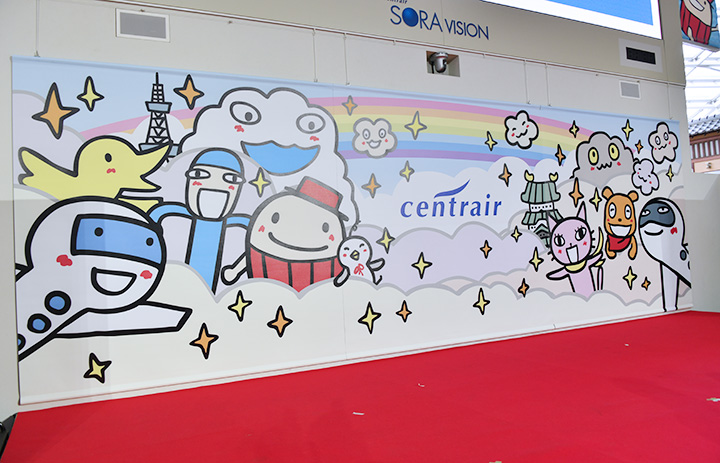 中部空港開港20周年でデザインを一新したイベントステージ=25年2月17日 PHOTO: Yusuke KOHASE/Aviation Wire
