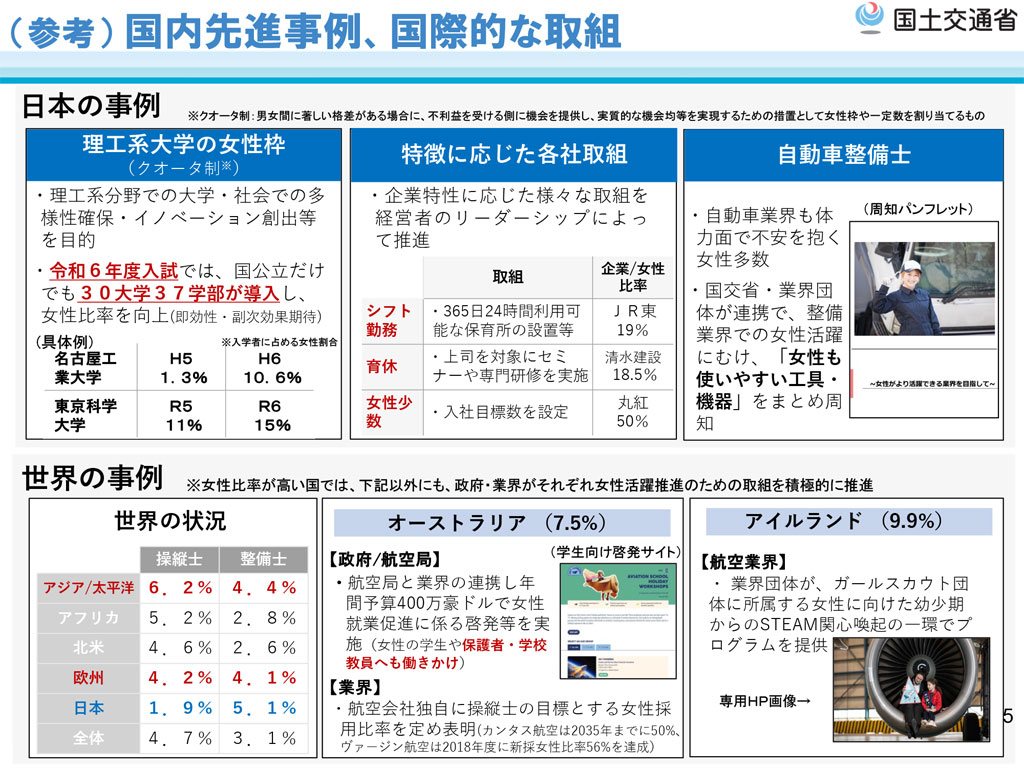 国交省が公表した操縦士・航空整備士の女性活躍推進WGとりまとめの概要