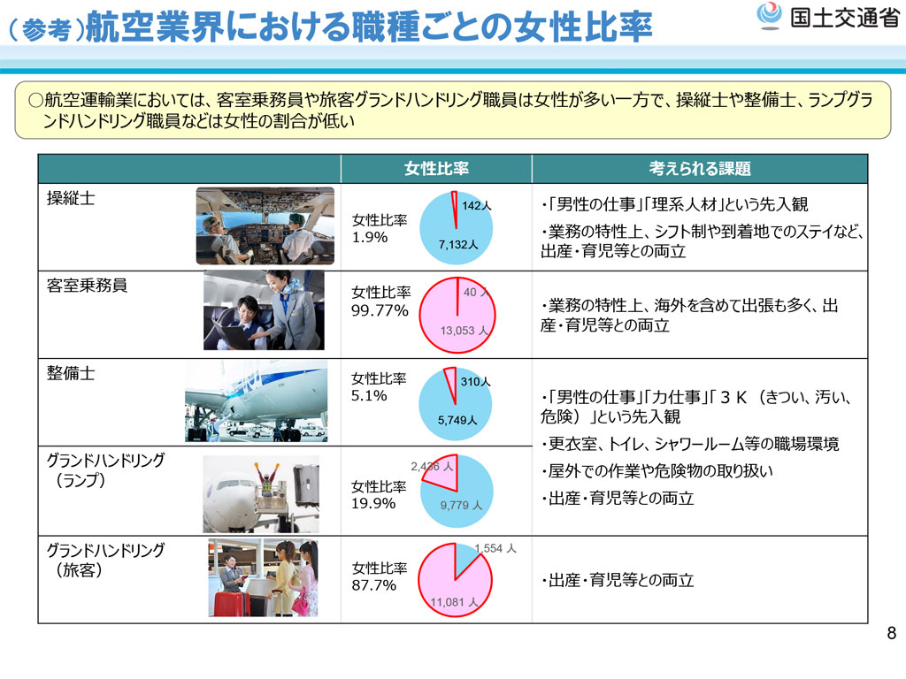 国交省が公表した操縦士・航空整備士の女性活躍推進WGとりまとめの概要