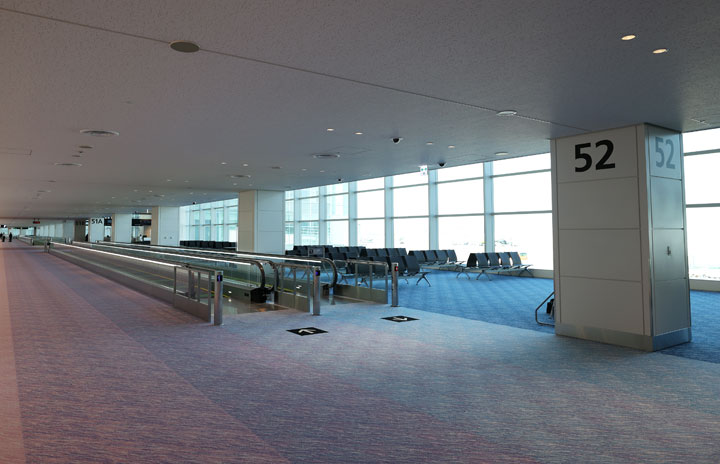 3月19日に供用開始となる羽田空港第2ターミナル本館(手前)とサテライトの接続部にある52番搭乗口付近=25年3月10日 PHOTO: Kiyoshi OTA/Aviation Wire