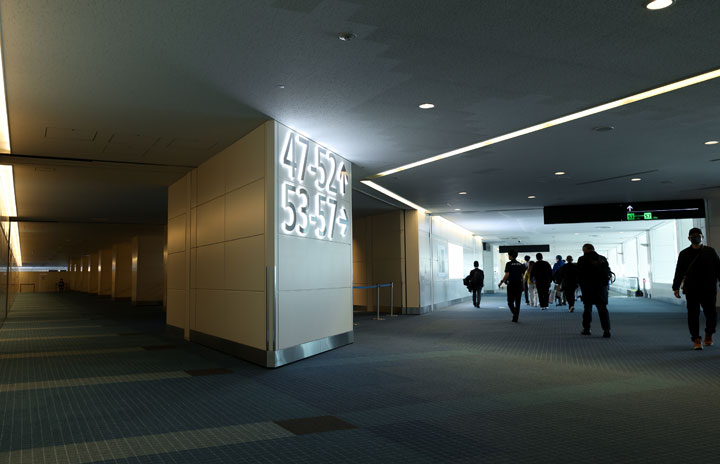羽田空港第2ターミナルの本館側53-57番搭乗口とサテライト側47-52番搭乗口の案内表示=25年3月10日 PHOTO: Kiyoshi OTA/Aviation Wire