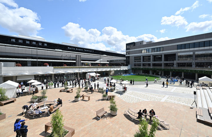 成田空港第2ターミナルに隣接する中央広場をリニューアルした「 Popo Park」=25年4月4日 PHOTO: Tadayuki YOSHIKAWA/Aviation Wire