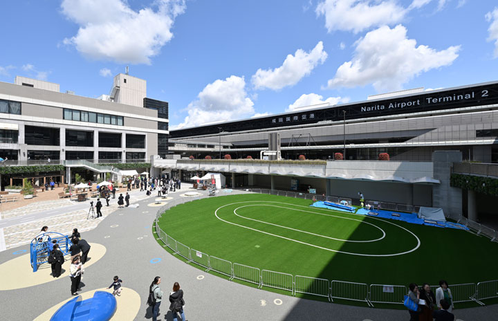 成田空港第2ターミナルに隣接する中央広場をリニューアルした「 Popo Park」=25年4月4日 PHOTO: Tadayuki YOSHIKAWA/Aviation Wire