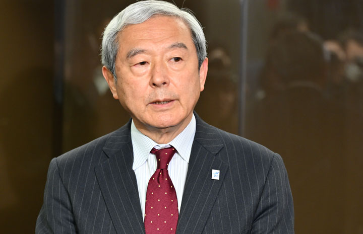 国交省で取材に応じるNAAの田村社長=25年4月4日 PHOTO: Tadayuki YOSHIKAWA/Aviation Wire