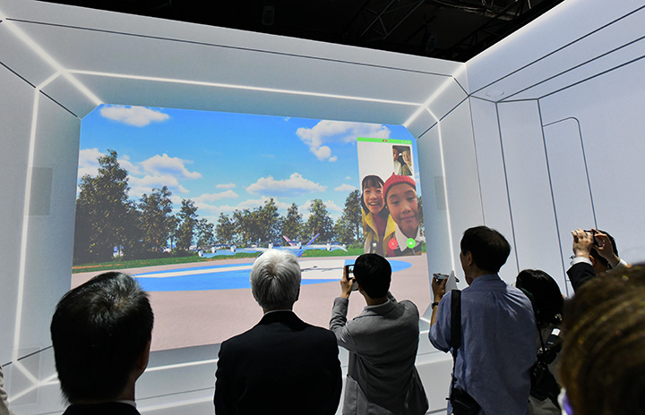 JALのイマーシブシアター「そらクルーズ」で万博記念公園を疑似出発する空飛ぶクルマ=25年4月9日 PHOTO: Yusuke KOHASE/Aviation Wire