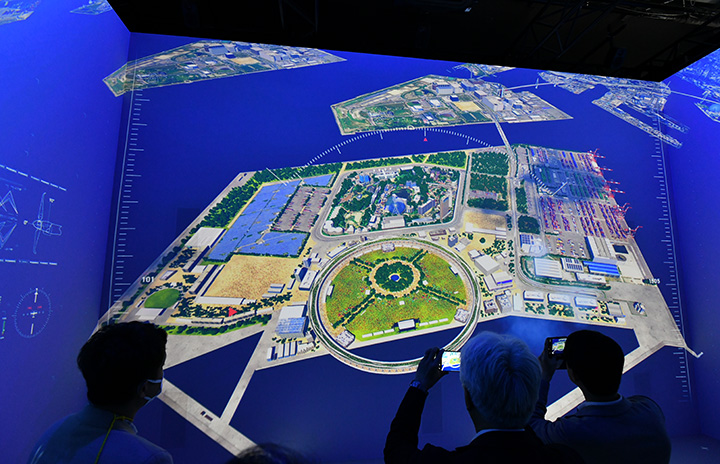 JALのイマーシブシアター「そらクルーズ」で万博会場の上空を疑似飛行する空飛ぶクルマ=25年4月9日 PHOTO: Yusuke KOHASE/Aviation Wire