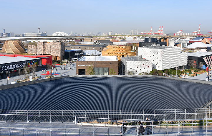 「大屋根リング」から見た大阪・関西万博会場=25年4月9日 PHOTO: Yusuke KOHASE/Aviation Wire