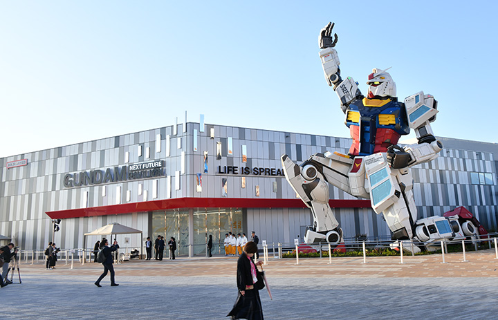 大阪・関西万博会場の「GUNDAM NEXT FUTURE PAVILION」で来場者を出迎えるガンダム=25年4月9日 PHOTO: Yusuke KOHASE/Aviation Wire