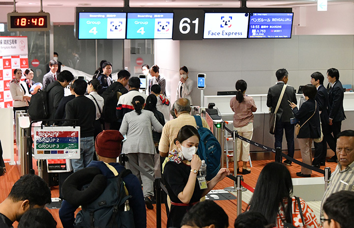 成田発ベンガルール行きJL753便への搭乗を待つ乗客=25年4月11日 PHOTO: Yusuke KOHASE/Aviation Wire