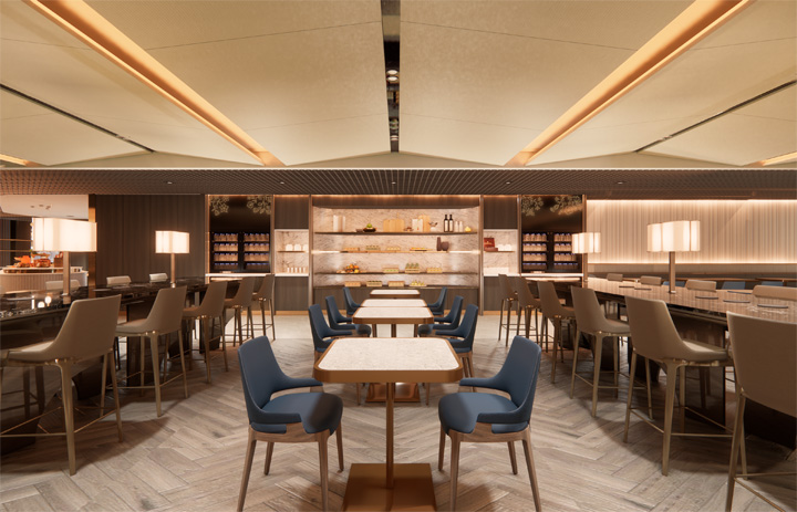 シンガポール航空がリニューアルするチャンギ空港T2のシルバークリスラウンジにあるビジネスクラスエリアのダイニング(イメージ、同社提供)