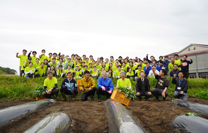 「ソラシドファーム枕崎」にサツマイモの苗を植え付けたソラシドの新入社員ら(同社提供)
