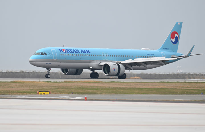 神戸空港に着陸する大韓航空のソウル仁川発KE731便=25年4月18日 PHOTO: Tadayuki YOSHIKAWA/Aviation Wire