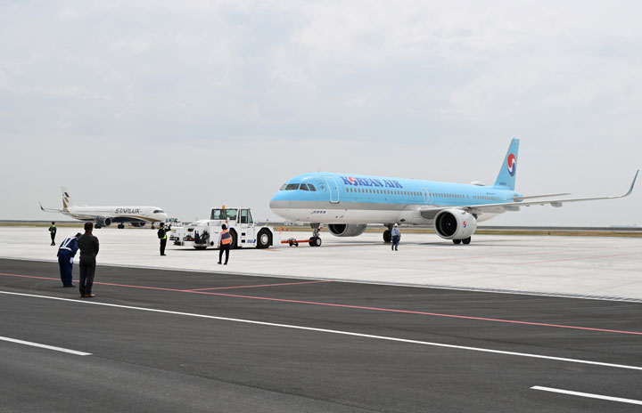 神戸空港を出発する大韓航空のソウル仁川行きKE732便(手前)とスターラックス航空の台北桃園行きJX835便=25年4月18日 PHOTO: Tadayuki YOSHIKAWA/Aviation Wire