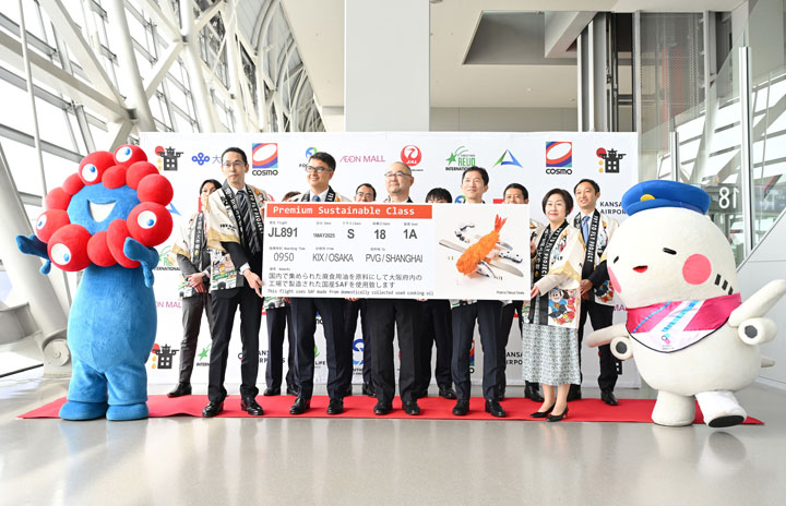 関空で国産SAFをPRするFry to Fly Project参加各社の出席者=25年5月1日 PHOTO: Tadayuki YOSHIKAWA/Aviation Wire