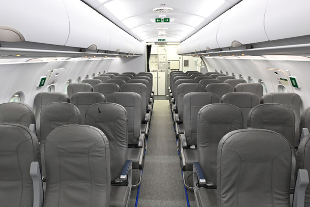 ピーチの複合訓練施設「モモトレ」のA320実機を改修した客室モックアップ=25年7月31日 PHOTO: Tadayuki YOSHIKAWA/Aviation Wire
