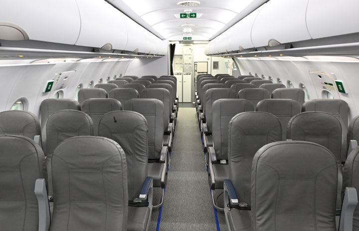 ピーチの複合訓練施設「モモトレ」のA320実機を改修した客室モックアップ=25年7月31日 PHOTO: Tadayuki YOSHIKAWA/Aviation Wire