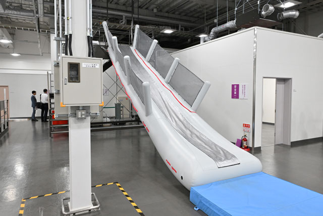 ピーチの複合訓練施設「モモトレ」の緊急脱出用スライド=25年7月31日 PHOTO: Tadayuki YOSHIKAWA/Aviation Wire