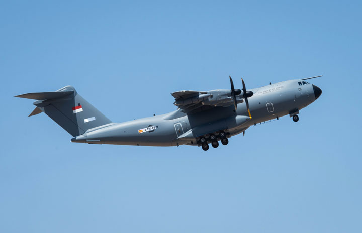 初飛行するインドネシア空軍向けA400M初号機(エアバス提供)