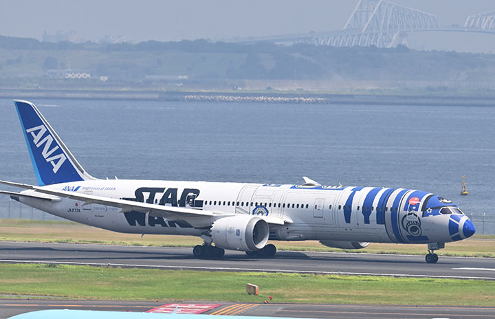 羽田空港を離陸するR2-D2 ANA JET羽田発ラストのワシントンD.C.行きNH102便=25年8月6日 PHOTO: Tadayuki YOSHIKAWA/Aviation Wire