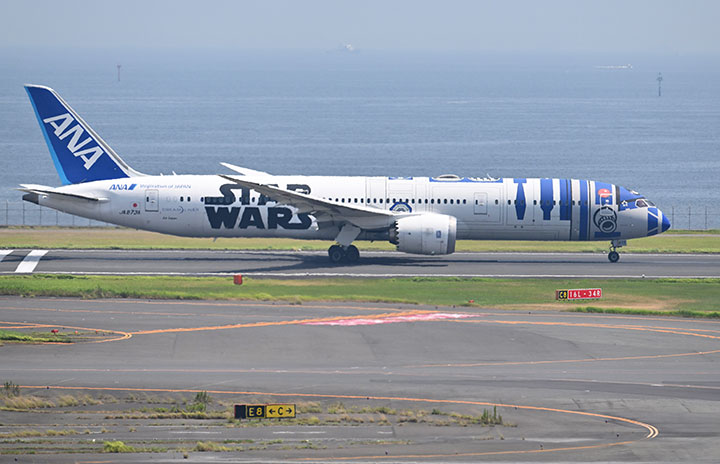 羽田空港を離陸するR2-D2 ANA JET羽田発ラストのワシントンD.C.行きNH102便=25年8月6日 PHOTO: Tadayuki YOSHIKAWA/Aviation Wire