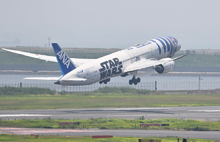 羽田空港を離陸するR2-D2 ANA JET羽田発ラストのワシントンD.C.行きNH102便=25年8月6日 PHOTO: Tadayuki YOSHIKAWA/Aviation Wire