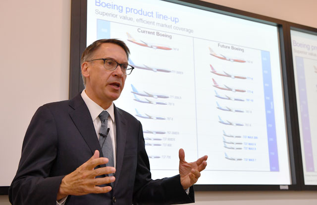 ボーイングの民間機戦略を説明するティンゼス氏=16年10月11日 PHOTO: Tadayuki YOSHIKAWA/Aviation Wire
