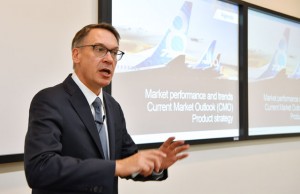 北東アジアの民間機需要予測を発表するボーイングのティンゼス氏=16年10月11日 PHOTO: Tadayuki YOSHIKAWA/Aviation Wire