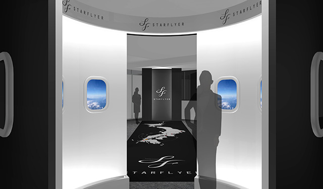 白と黒を基調にしたアンテナショップ入口(イメージ、スターフライヤー提供)