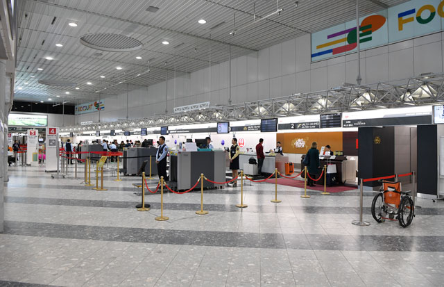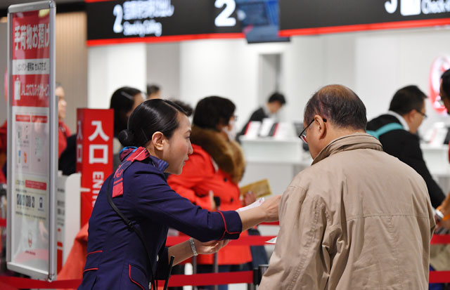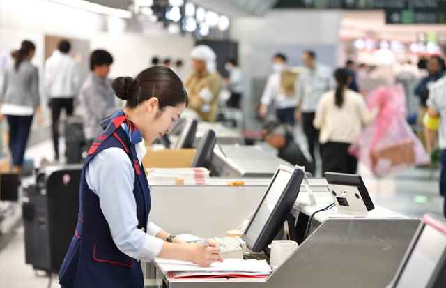 案内表示は、文字の大きさやピクトグラム(絵文字)を見直し、日本語と英語、中国語、韓国語で案内することで、増加する訪日外国人への対応を強化。また、これまでは手荷物の預かりや航空券の発券など、役割ごとにカウンターの機器が分かれていたが、どのカウンターでも業務出来るように見直した。