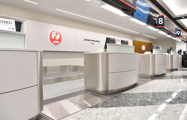 新カウンターのオープンにより、JALの旅客用施設のリニューアルは完了。今後はターミナル北側にある全日本空輸(ANA/NH)のエリアが改修される。