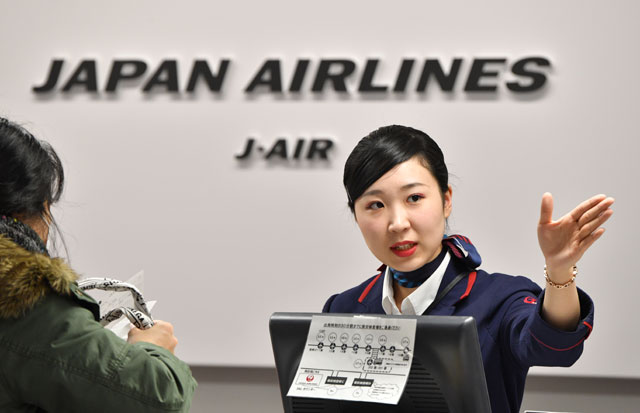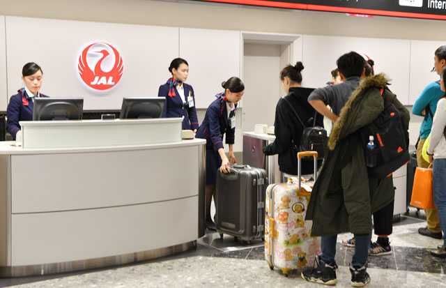新千歳空港の新カウンターで応対するJALの地上係員=16年12月13日 PHOTO: Tadayuki YOSHIKAWA/Aviation Wire