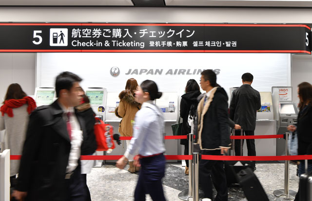 13日にオープンした新千歳空港のJAL新カウンターに設置された自動チェックイン機=16年12月13日 PHOTO: Tadayuki YOSHIKAWA/Aviation Wire