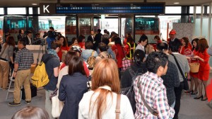 ソウル線初便の搭乗手続きを行う乗客=10月28日 PHOTO: Tadayuki YOSHIKAWA/Aviation Wire