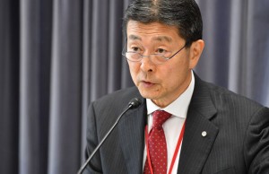 4-12月期決算を発表するJALの斉藤専務=17年1月31日 PHOTO: Tadayuki YOSHIKAWA/Aviation Wire