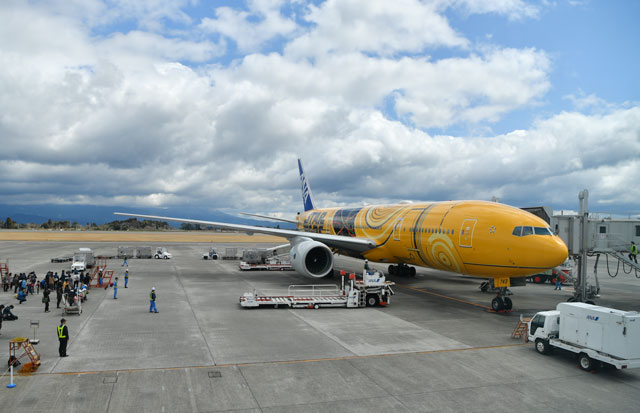 鹿児島空港に到着したANAのC-3POジェット=17年3月21日 PHOTO: Tadayuki YOSHIKAWA/Aviation Wire